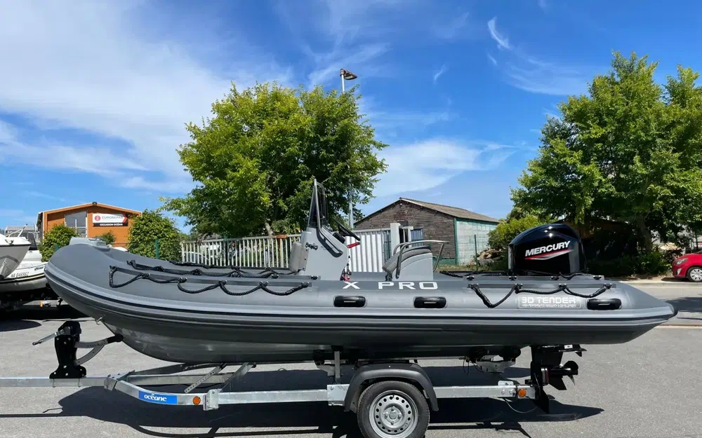 Nous vous proposons à la vente, ce pack complet bateau+moteur+remorque, comprenant une coque semi-rigide XPRO535 en PVC, un moteur Mercury 4 temps 50 CV et une remorque Océane O075t-55