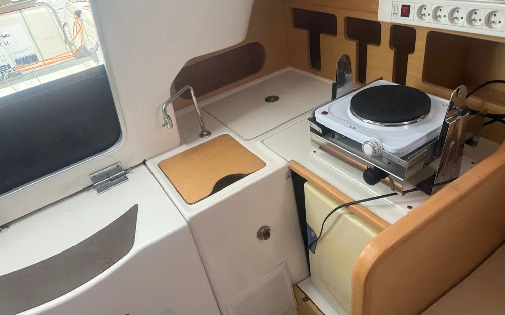 Un Frigo branchement de quai électrique .Une plaque électrique branchement de quai et une plaque gaz en navigation.