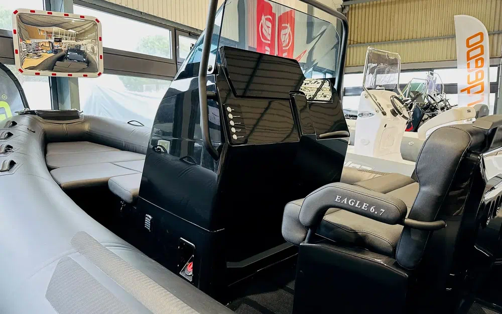 Nous vous proposons un bateau semi-rigide BRIG EAGLE 6.7, avec un moteur Mercury 4 temps 150 CV EFI.