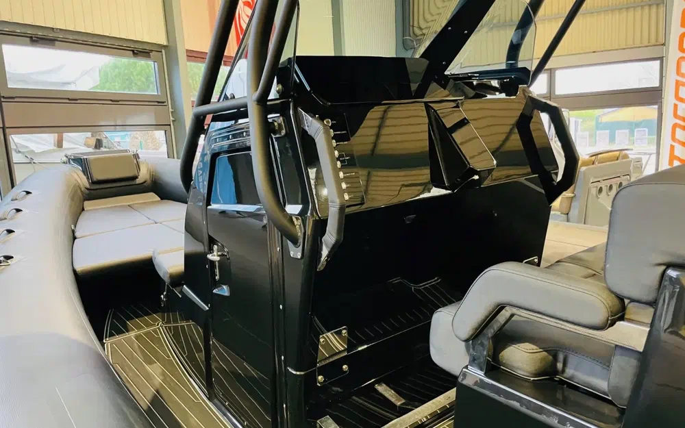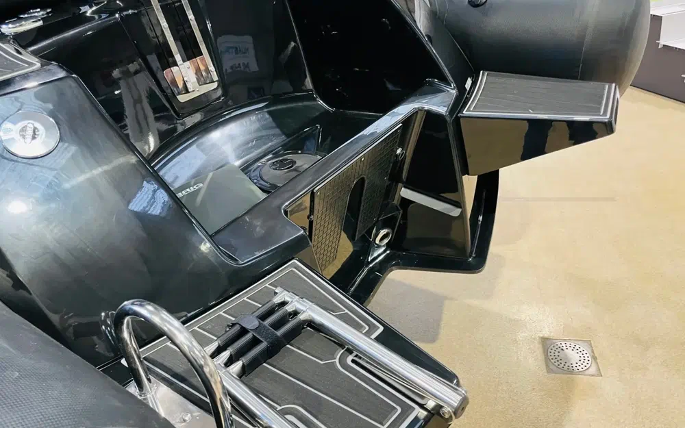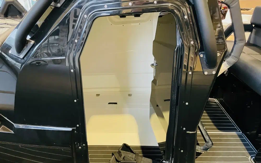 Il a été conçu pour répondre à tous les usages. Sa plateforme avant généreuse peut recevoir un bain de soleil ou des banquettes supplémentaires, sa console est aménagée en rangement et peut être équipée de toilettes.