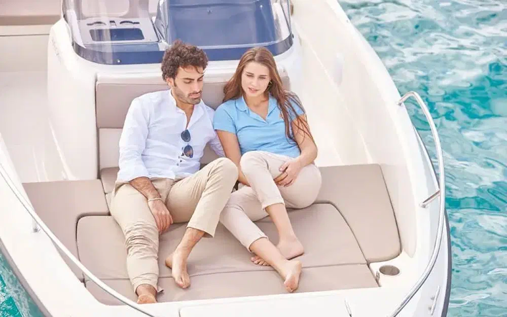 Avec une longueur de 6.46 m et une largeur de 2.4 m, ce bateau est conçu pour accueillir jusqu'à 7 passagers. Vous apprécierez sa cabine pour profiter de vos escapades de jour. Grâce à la présence de nombreuses banquettes rabattables et banquettes extérieures, la convivialité est au rendez-vous !