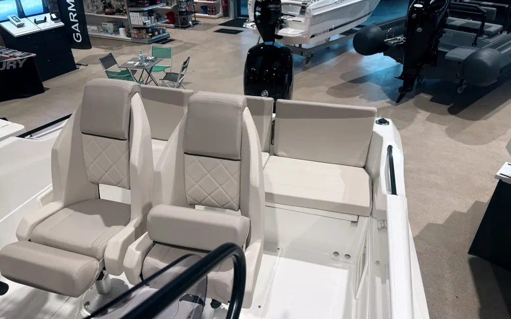 Équipé de nombreux atouts comme une pompe de cale électrique, des batteries, une échelle de bain et un bain de soleil avant, ce modèle est parfait pour profiter des journées ensoleillées. Sous le capot, il est animé par un moteur Mercury de 150 chevaux (édition 150 Racing) qui vous assurera des sensations de vitesse tout en restant écoénergétique.
